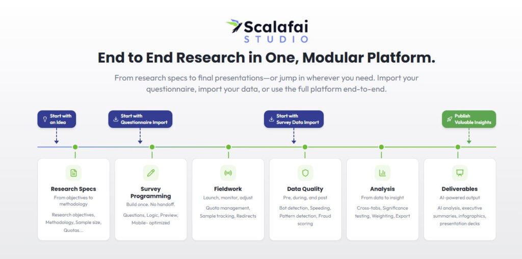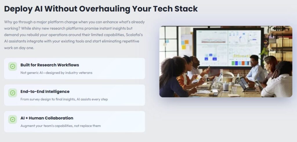 Scalafai AI-native insights platform helps research teams do more with less, faster, without disrupting day to day operations.