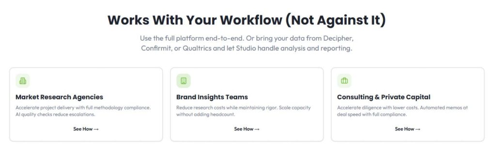 - Market Research Agencies: AI built for research workflows