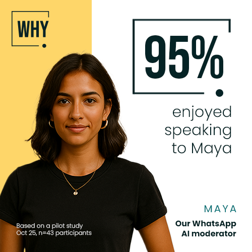 By putting participants front and centre, we deliver powerful, in-the-moment insights that help brands make confident, effective decisions. Whether it’s through branded online communities, ad-hoc projects, or mobile research using our MRS Award-winning WhatsApp tool and digital platform, we make it easy to get to the heart of your research questions.