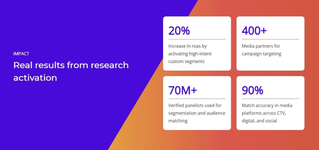 - Custom Audiences: Fully scaled, privacy-compliant audiences built from brand trackers, surveys, or segmentation research