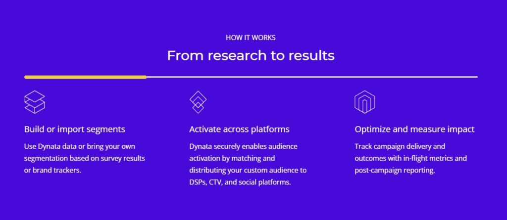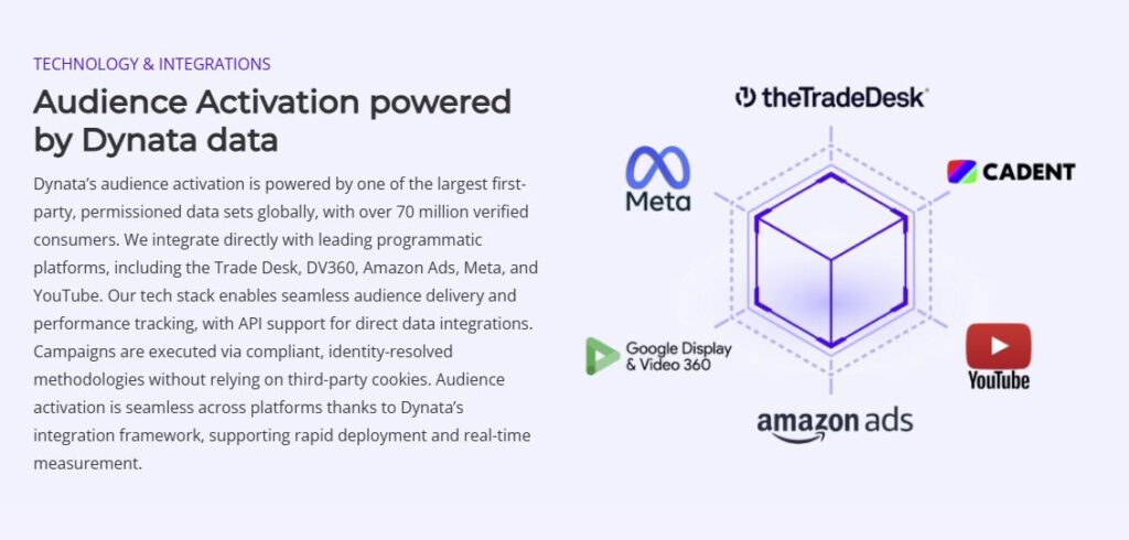 Dynata’s Audience Activation connects market research directly to media execution, enabling brands to activate research-defined behavioural and attitudinal audiences across digital, social, CTV, and programmatic platforms. Built on a global first-party, permissioned dataset of 70M+ verified consumers, the solution supports privacy-compliant, identity-resolved targeting without third-party cookies.